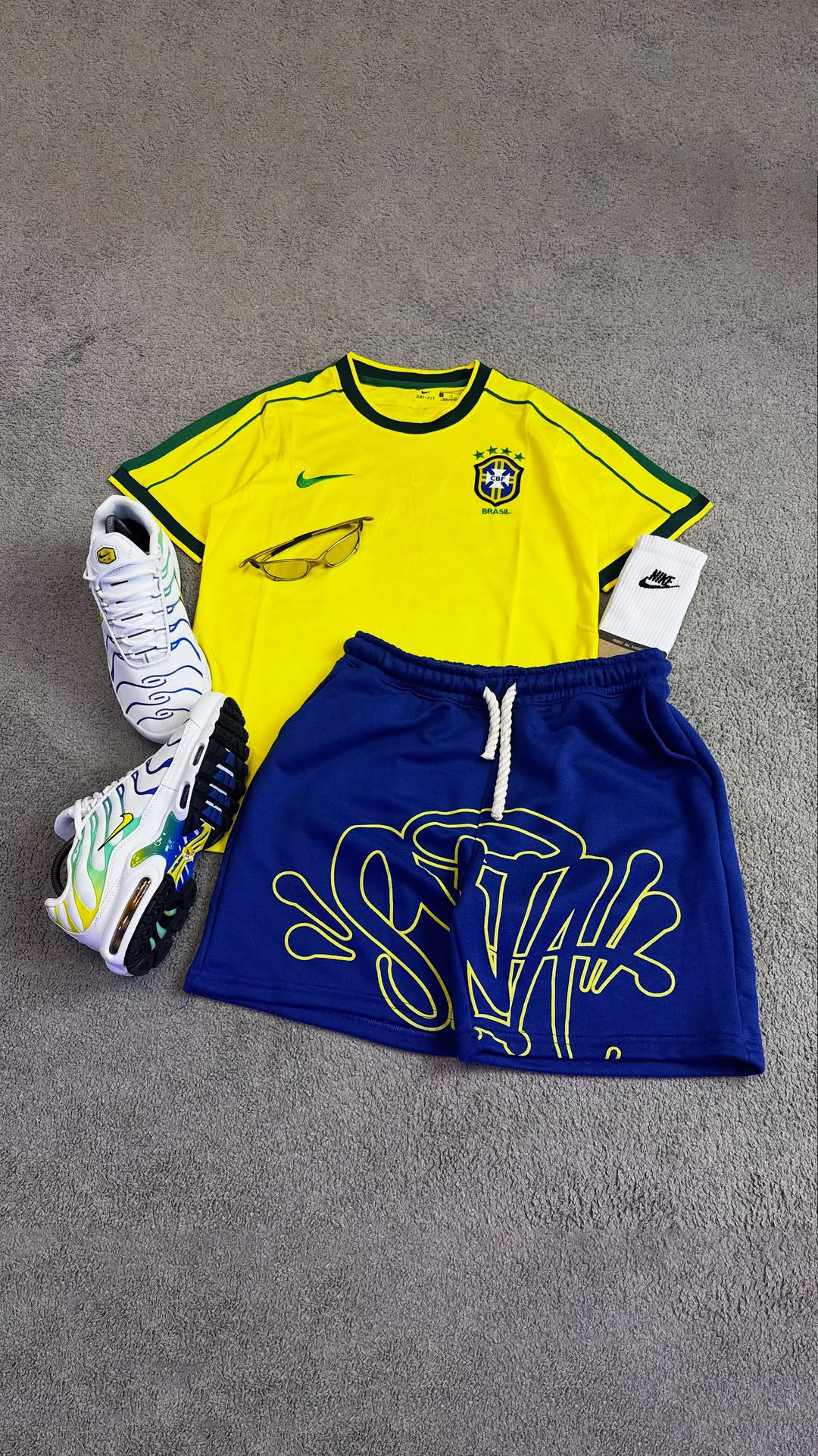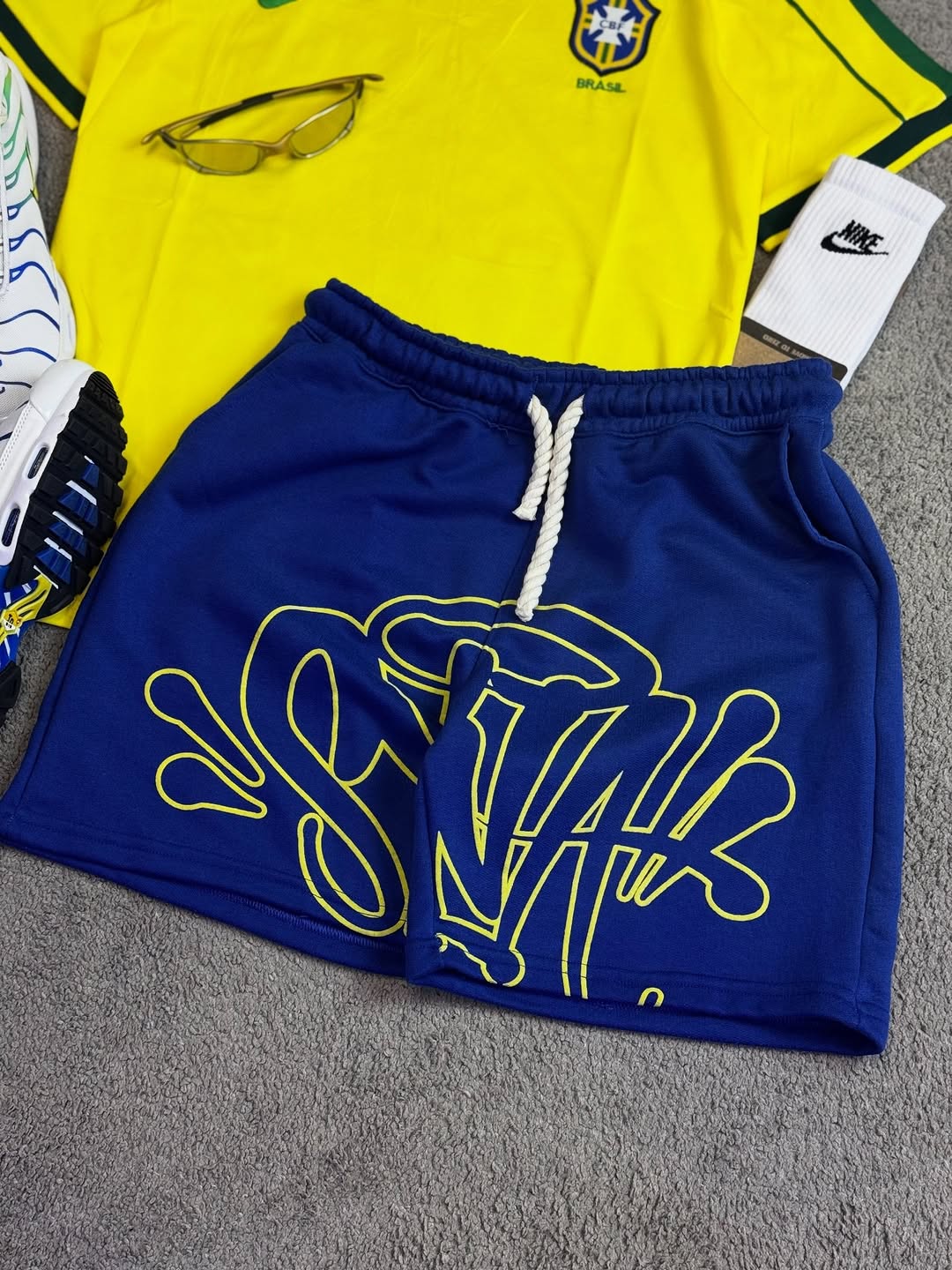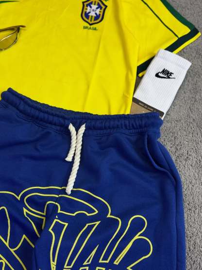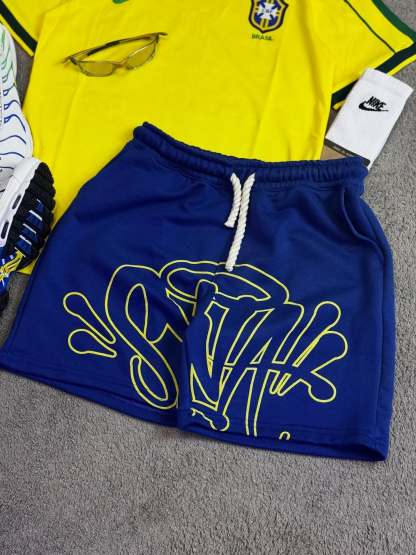 Yellow and Blue Color-Block Casual Jersey Set